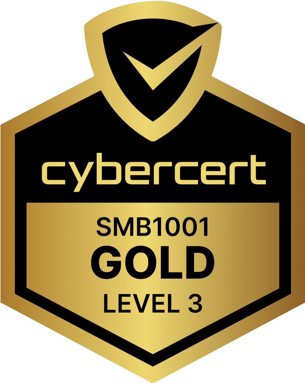 The SMB1001 Gold Certification is the third level in the CyberCert program, designed for businesses requiring demonstrable cyber resilience, regulatory alignment, and assurance for handling sensitive data.